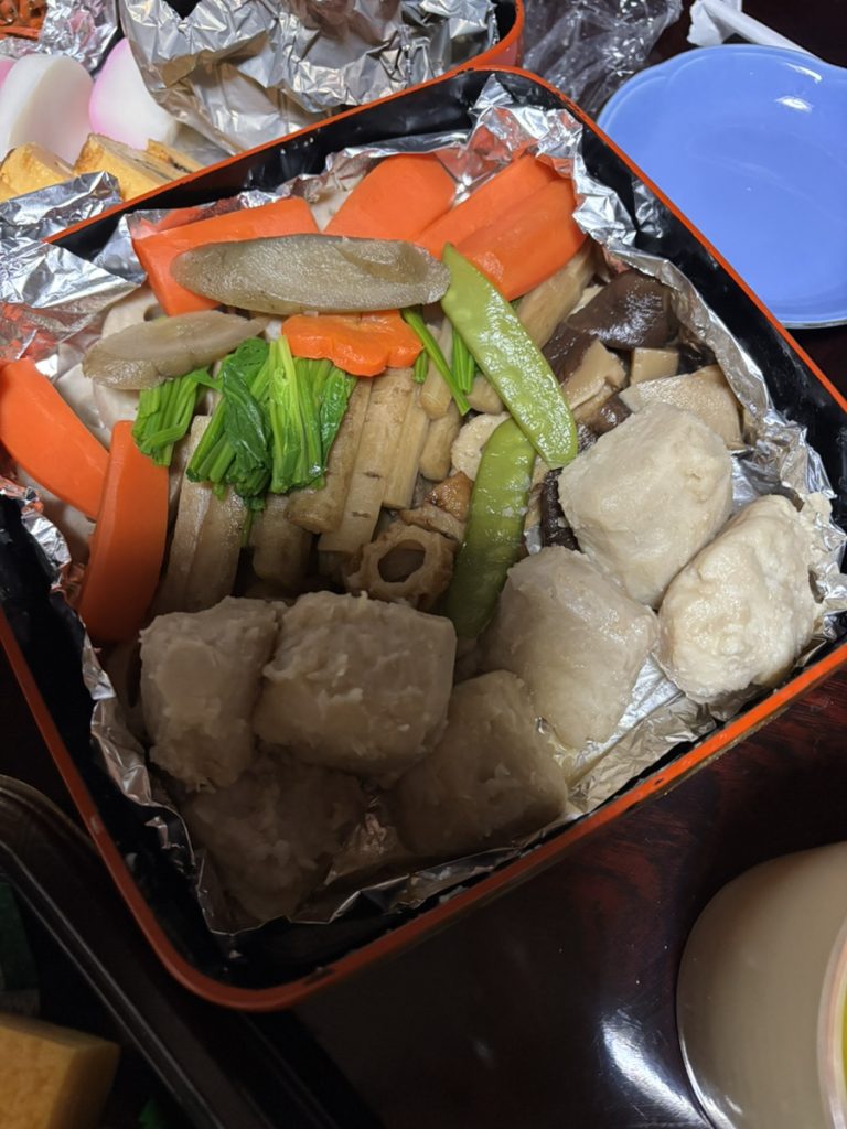実家の店で働いている元料理人のおじさんが作ってくれたおせちを食べ